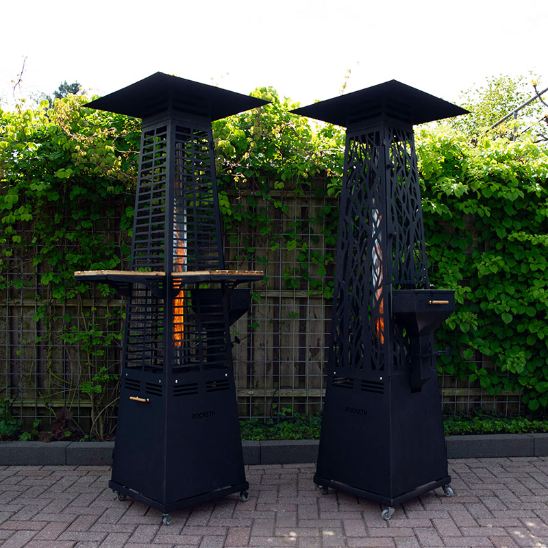 Voor de horeca hebben we modellen zoals de Atlas en de Atlantis ontwikkeld. Deze grote modellen zijn uitgerust met een externe houder voor eenvoudig bijvullen van pelletkorrels. Ze beschikken ook over drie handige plankjes voor het serveren van warme dranken of hapjes, en bieden een ruimere stralingswijdte voor grotere gelegenheden.
